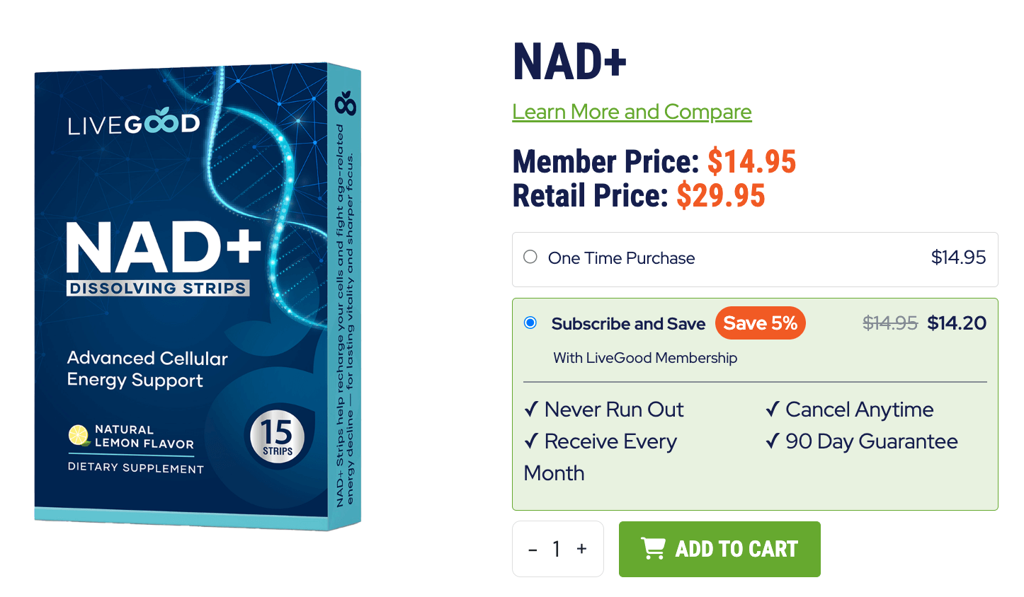 | LiveGood NAD+ | Dissolvable Strips | $29.95 |