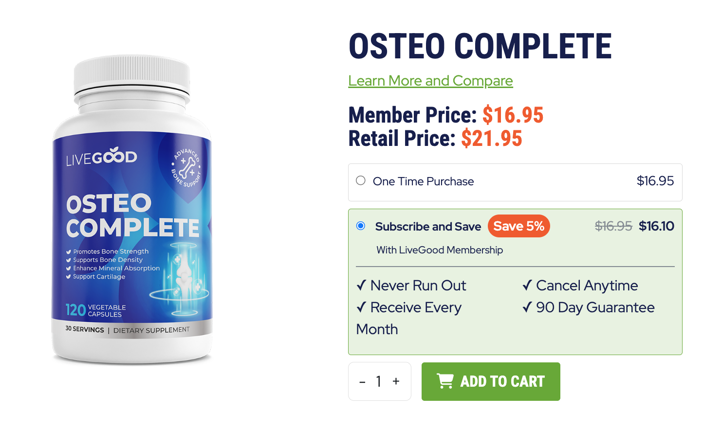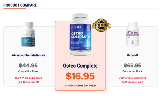 LiveGood Osteo Complete: Just $16.95 (Member Price) – The best value without compromising quality.